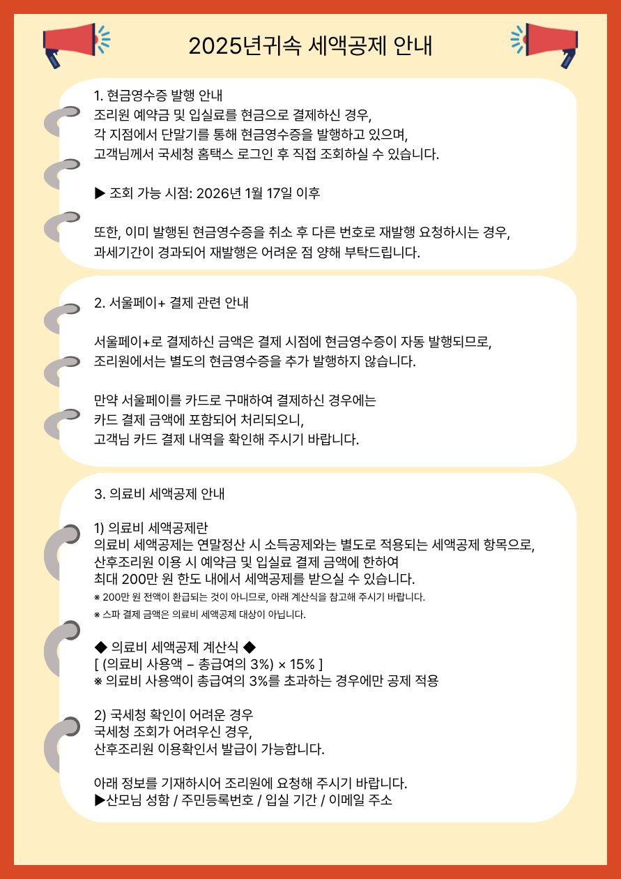 조리원 산전 스파 서비스 방문시 방역패스 안내입니다.
